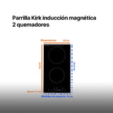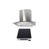 Combo campana extractora análoga para cocina de acero inoxidable con cristal templado de 60cm + Parrilla de inducción magnética con 2 quemadores 110v