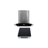 Combo campana extractora digital para cocina de acero inoxidable con cristal templado de 60cm + Parrilla de inducción mágnética con 2 quemadores 110v