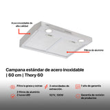 Campana extractora estandar de pared en acero inoxidable 60cm
