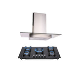Combo campana extractora análoga para cocina de pared en acero inoxidable y cristal templado recto de 90 cm + Parrilla de cristal templado empotrable de gas con 5 quemadores 86cm