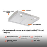 Campana extractora estandar de pared en acero inoxidable 75cm