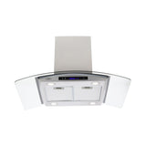 Combo campana Ventex extractora para cocina de isla en acero inoxidable y cristal templado curvo de 90 cm + Parrilla Vignus de acero inoxidable empotrable de gas con 5 quemadores 76cm