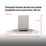 Campana de isla 90cm Ventex + Parrilla acero inoxidable Vignus