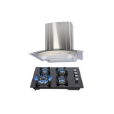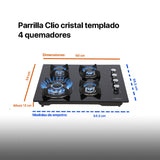 Combo Marex campana extractora análoga para cocina de acero inoxidable con cristal templado de 60cm + Parrilla Clio de cristal templado empotrable de gas con 4 quemadores 60cm