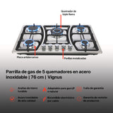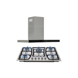 Combo Campana extractora digital para cocina de pared en acero inoxidable 90 cm + Parrilla de acero inoxidable empotrable de gas con 5 quemadores 76cm