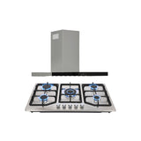 Combo Campana extractora digital para cocina de pared en acero inoxidable 90 cm + Parrilla de acero inoxidable empotrable de gas con 5 quemadores 86cm