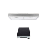 Combo campana extractora estándar de pared en acero inoxidable 75cm + Parrilla de inducción magnética con 2 quemadores 110v