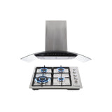 Combo Campana extractora digital para cocina de pared en acero inoxidable y cristal templado 85 cm + Parrilla de acero inoxidable empotrable de gas con 4 quemadores 60cm