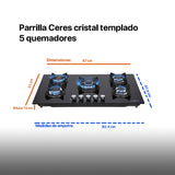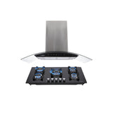 Combo Campana extractora digital para cocina de pared en acero inoxidable y cristal templado 85 cm + Parrilla de cristal templado empotrable de gas con 5 quemadores 86cm