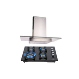 Combo campana extractora análoga para cocina de pared en acero inoxidable y cristal templado recto de 90 cm + Parrilla de cristal templado empotrable de gas con 4 quemadores 60cm