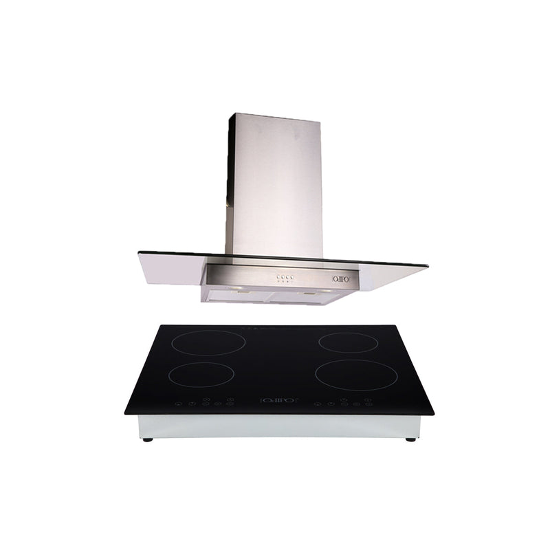 Combo campana extractora análoga para cocina de pared en acero inoxidable y cristal templado recto de 90 cm + Parrilla de inducción magnética con 4 quemadores 110v