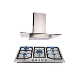 Combo campana extractora análoga para cocina de pared en acero inoxidable y cristal templado recto de 90 cm + Parrilla de acero inoxidable empotrable de gas con 5 quemadores 86cm