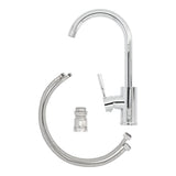 Llave mezcladora de cocina Austin Cromo, es un elemento adecuado para complementar la instalación hidráulica del hogar, además brinda un flujo de agua eficiente para lavar las frutas, verduras y utensilios de cocina.