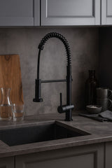 Monomando mezcladora de cocina flexible Odessa color negro. Ideal para cocinas integrales.