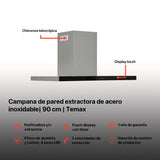 Campana extractora acero inoxidable 90cm Temax + Parrilla cristal templado 76cm Capella + Horno de gas encendido eléctrico empotrable 60cm Motrix