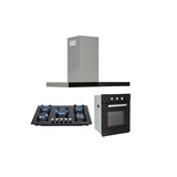 Tricombo campana extractora digital para cocina de pared en acero inoxidable 90 cm + Parrilla de cristal templado empotrable de gas con 5 quemadores 76cm + Horno eléctrico empotrable adaptable para gas natural o LP de 60cm Motrix