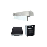 Tricombo campana extractora estándar de pared en acero inoxidable 50cm + Parrilla de inducción magnética con 2 quemadores 110v +Horno eléctrico empotrable 60cm E-Motrix acero inox.