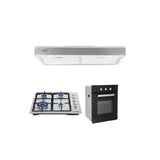 Tricombo campana extractora estandar de pared en acero inoxidable 60cm + Parrilla de acero inoxidable empotrable de gas con 4 quemadores 60cm + Horno eléctrico empotrable adaptable para gas natural o LP de 60cm Motrix