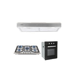 Campana extractora acero inoxidable Thory 80 + Parrilla acero inoxidable 86cm Vesta + Horno de gas encendido eléctrico empotrable 60cm Motrix