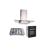 Tricombo Campana extractora análoga para cocina de pared en acero inoxidable y cristal templado recto de 90 cm + Parrilla de acero inoxidable empotrable de gas con 4 quemadores 60cm + Horno eléctrico empotrable adaptable para gas natural o LP de 60cm Motrix