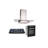 Tricombo Campana extractora análoga para cocina de pared en acero inoxidable y cristal templado recto de 90 cm + Parrilla de cristal templado empotrable de gas con 5 quemadores 86cm + Horno eléctrico empotrable adaptable para gas natural o LP de 60cm Motrix