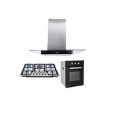Tricombo Campana extractora para cocina de isla en acero inoxidable y cristal templado recto de 90 cm + Parrilla de acero inoxidable empotrable de gas con 5 quemadores 76cm + Horno eléctrico empotrable adaptable para gas natural o LP de 60cm Motrix