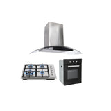 Tricombo Campana extractora digital para cocina de pared en acero inoxidable y cristal templado 85 cm + Parrilla de acero inoxidable empotrable de gas con 4 quemadores 60cm + Horno eléctrico empotrable adaptable para gas natural o LP de 60cm Motrix