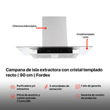 Campana extractora para cocina de isla en acero inoxidable y cristal templado recto de90 cm