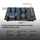 Parrilla de cristal templado empotrable de gas con 4 quemadores 60cm